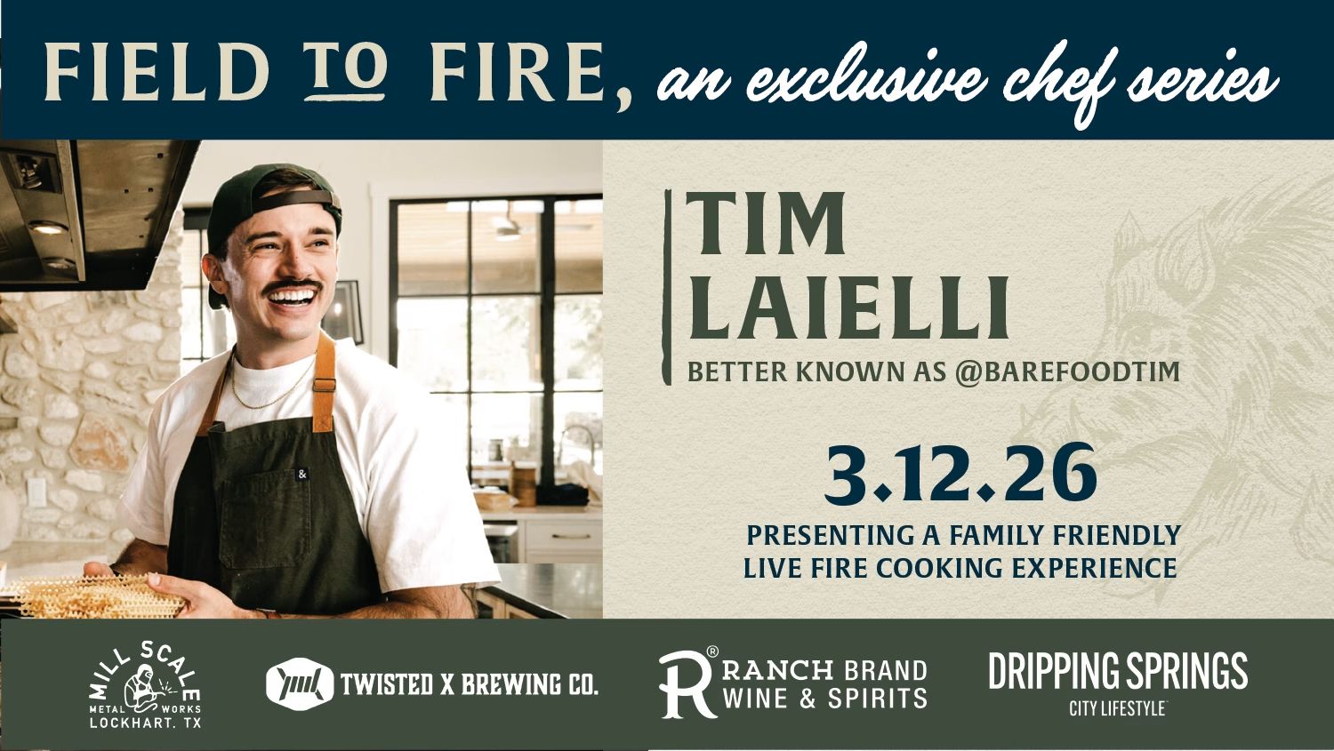 FIELD TO FIRE | Mar 12, 5–9pm | Hog Heaven Sporting Club | $25 | Info
